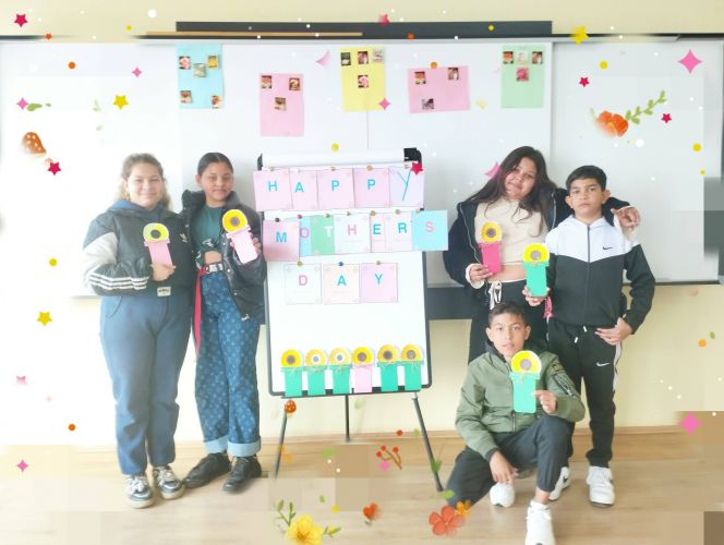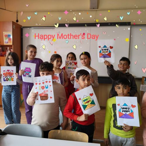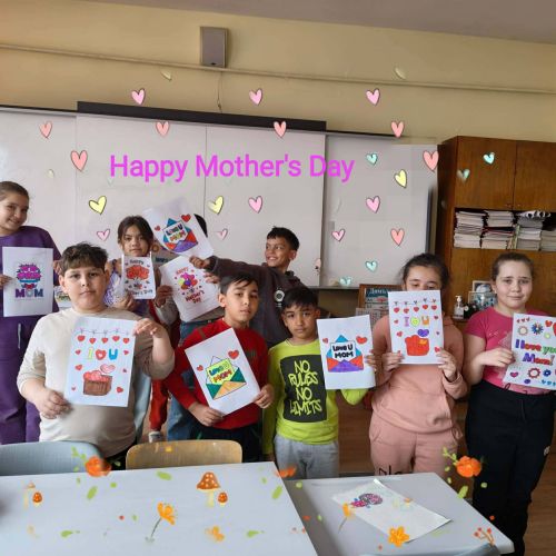 По този повод учениците от 5б, 4в, 3в и 3а клас се включиха в творческа инициатива посветена на празника. Под ръководството на г-жа Б.Петкова и г-жа Т.Бянова учениците изработиха картички, предназначени за техните майки, написаха поздравления на английски език и прочетоха кратки стихчета.