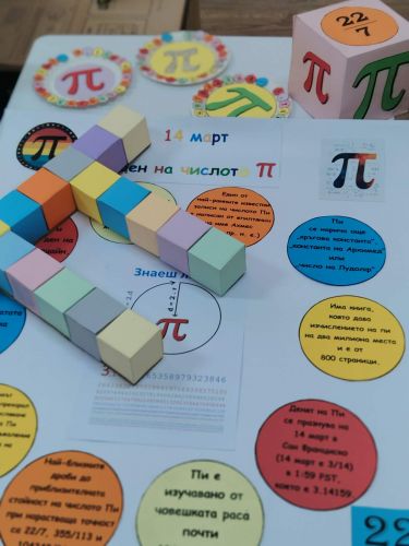 Компютрите не са само за игри и забавление, а са мощен инструмент за разкриване на тайните на вселената. Наш главен герой е най-известното число в света – числото Пи. Младите компютърни специалисти от VI Б клас с ръководител Диана Чавдарова впрегнаха своите умения, за да превърнат една абстрактна математическа константа в нещо видимо и красиво. Използваха софтуерни инструменти, за да визуализират безкрайността на Пи и да създадат прецизни модели. На информационно табло представиха любопитни факти за ирационалното число. Декорацията е изработена като символ на хармонията между геометрията и технологиите.